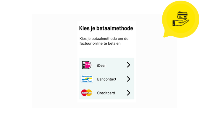 iDeal, Apple Pay, Bancontact; je klanten betalen zoals ze dat het liefst hebben. En jij krijgt alles binnen via je portaal.