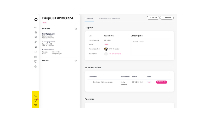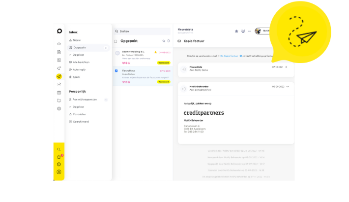Met Notify krijg je een goede flow in je betalingsverkeer en creditmanagement. Onze software geeft je namelijk echt een compleet pakket in handen. Eigenlijk alles wat je nodig hebt om je organisatie lekker te laten draaien, zodat je tijd over hebt voor die persoonlijke aanpak. Wat krijg je dan allemaal? We zetten de belangrijkste features even voor je op een rij.